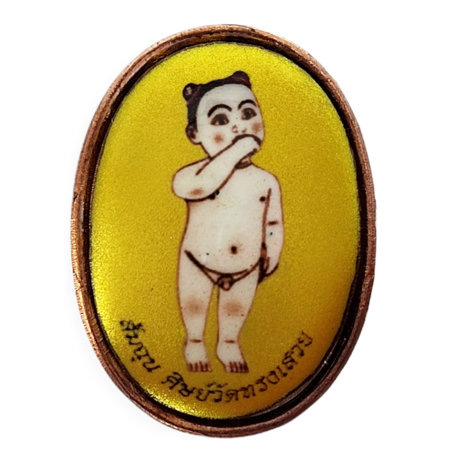 ล็อกเก็ตฉากทองรุ่นแรก ไอ้ส้มฉุน ศิษย์วัดทรงเสวย อ.วัดสิงห์ จ.ชัยนาท รุ่น พารวย 64 แถมฟรีธูปไอ้ส้มฉุน1ดอก