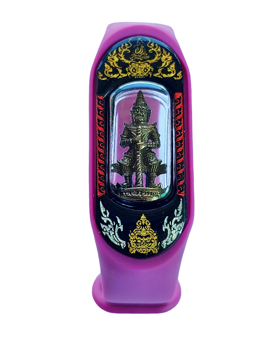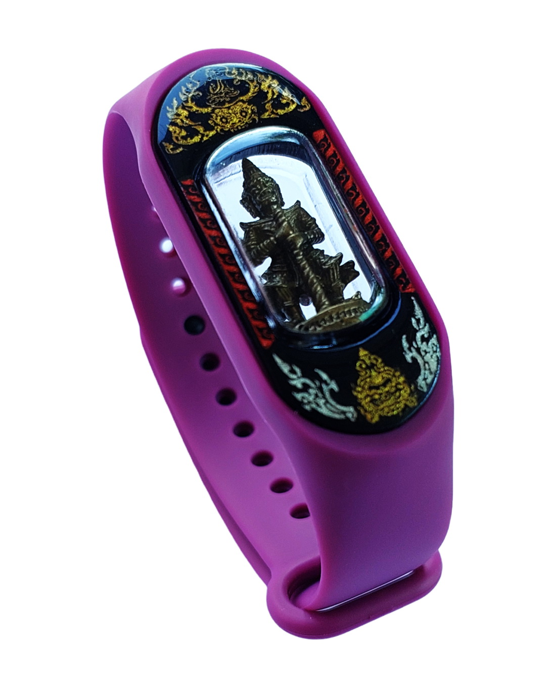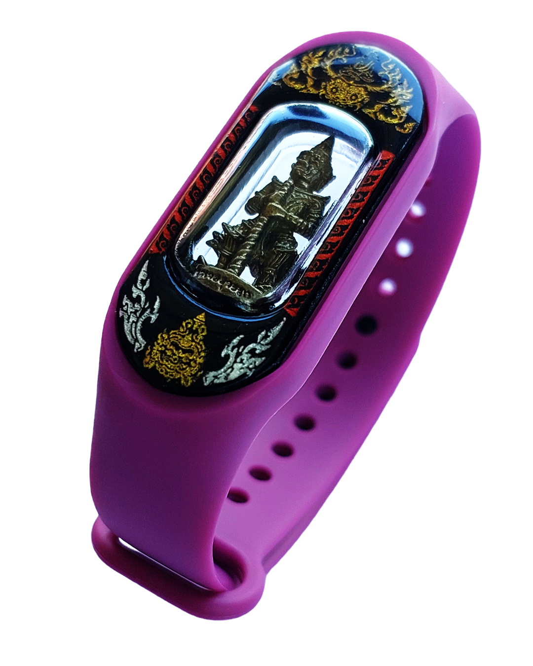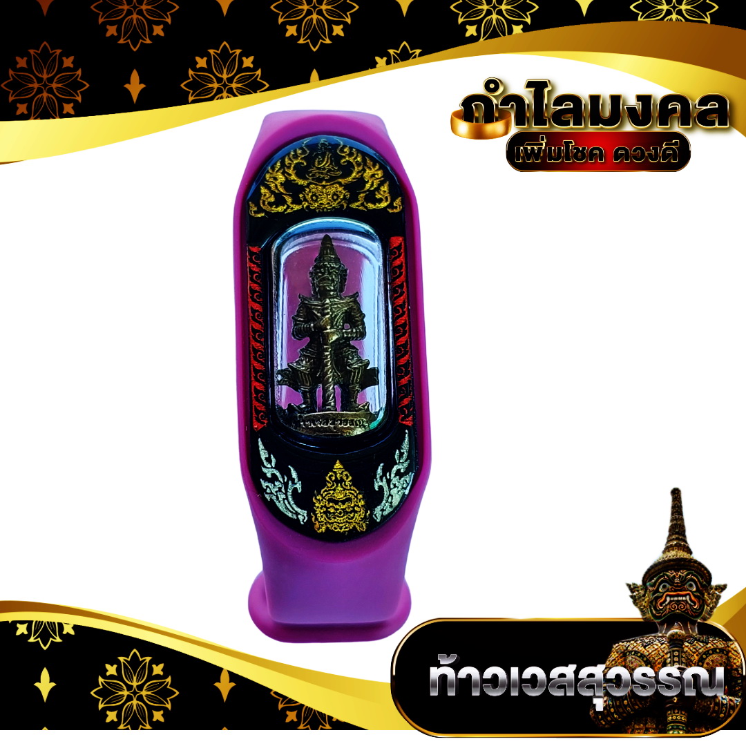 สายข้อมือท้าวเวสสุวรรณ เปิดทรัพย์ รับโชค วันเสาร์ สีม่วง เลี่ยมกรอบพลาสติกกันน้ำแกะลายเลเซอร์ ผ่านพิธีปลุกเสกแล้ว สายปรับขนาดได้